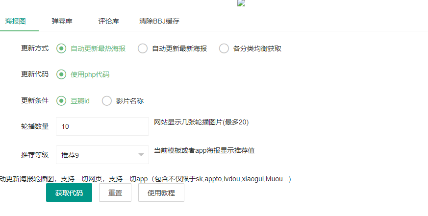 对接任何程序cms程序,当你获取到php代码后,通过下载文件,放到程序的根目录下 一.将文件放到跟目录并解压二.将后台管理添加到自定义菜单,复制下方配置到自定义菜单,自定义菜单下方点击保存BBJ管理,/bbj/index.php三.刷新苹果cms后台,可在首页看到BBJ管理