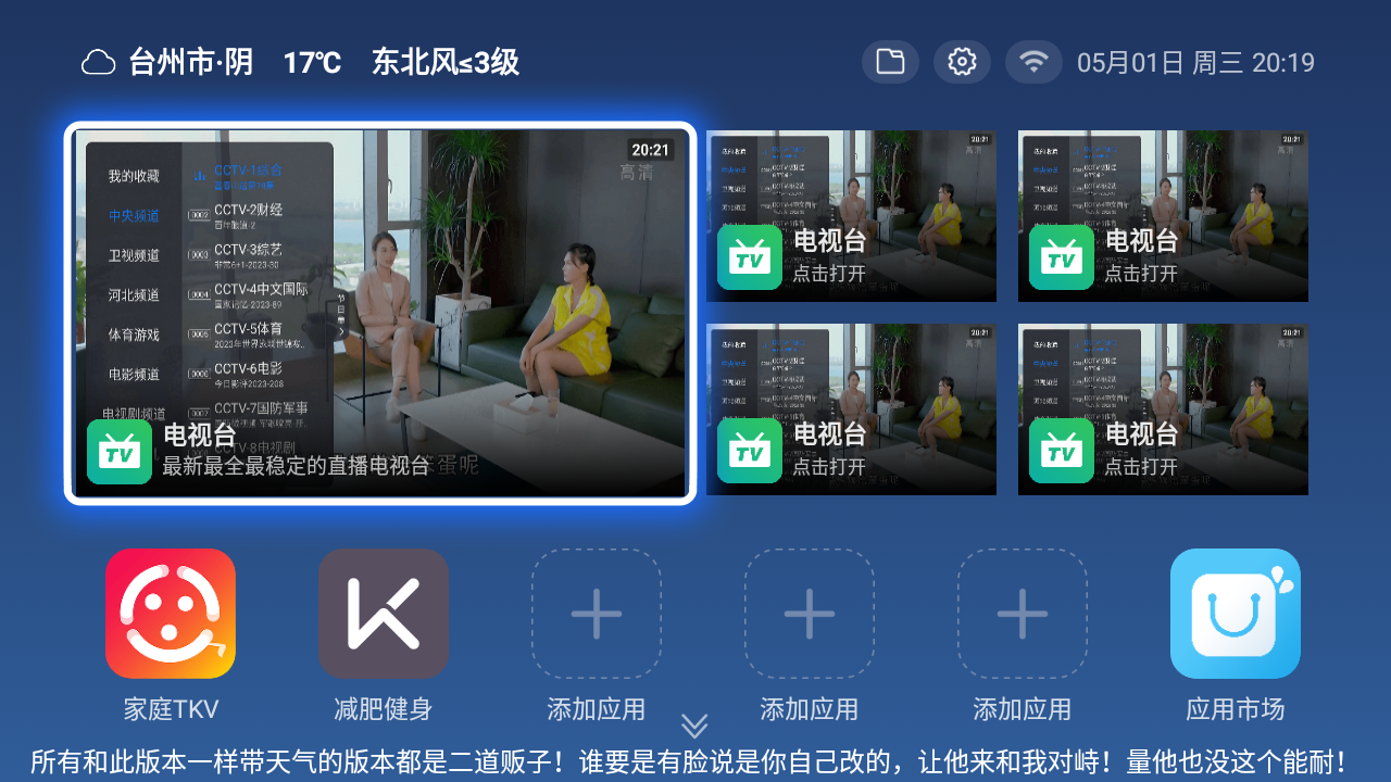 站长亲测 爱家TV云桌面天气预报版本源码反编译版本,自带应用市场完美兼容安卓9.0系统